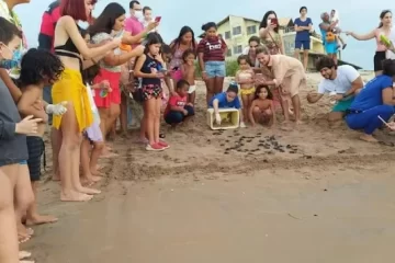 Duzentos filhotes de tartarugas-de-pente desceram rumo ao mar no sábado dia 19, depois de nascerem nas praias do Arrombado…