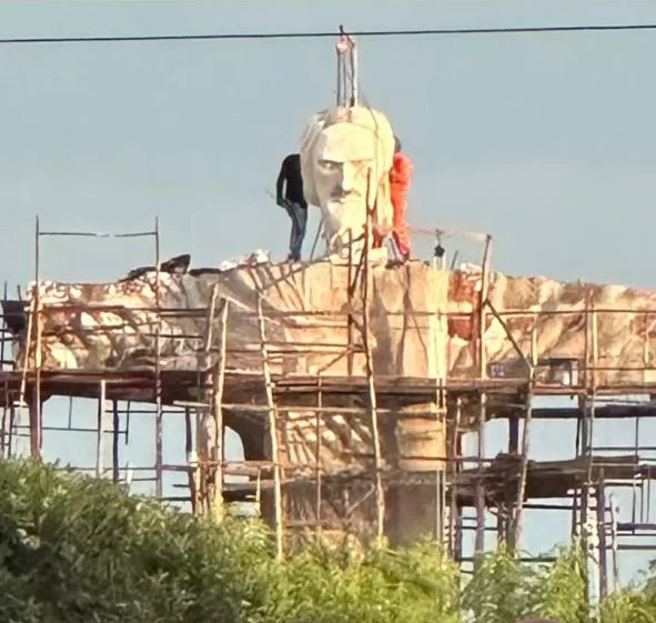 Em fase final de acabamento a estátua do Cristo Redentor que está sendo construída na praça Terra Santa em Parnaíba terá aproximadamente 11 metros de altura e 11,7 metros de envergadura.