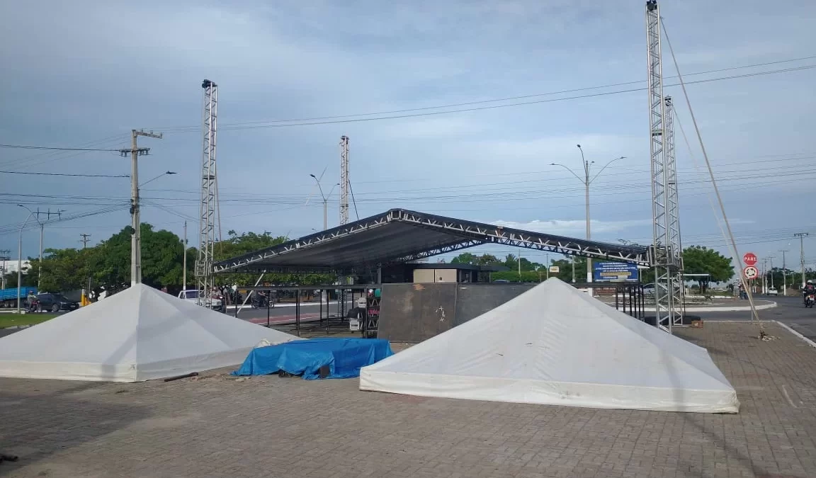 A montagem do palco para os shows musicais e das arquibancadas para acomodar milhares de parnaibanos e turistas, está em ritmo acelerado, além do reforço na iluminação para assegurar a melhor visibilidade do público. Fonte: PHBN. Foto: PHBN. Edição: APM Notícias.