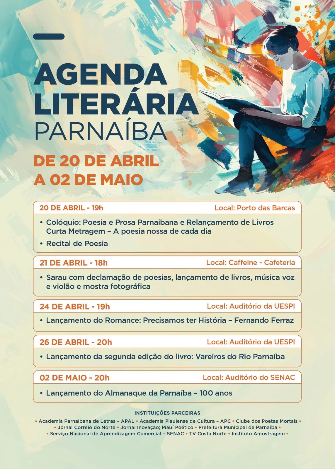 hoje com a execução de um Colóquio Cultural, abrindo uma Agenda Literária no Porto das Barcas que se estenderá por vários dias e só encerra no início de maio, com o lançamento da edição centenária do Almanaque da Parnaiba no no Auditório do Senac .
