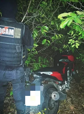 Após o crime, a dupla fugiu em sentido ignorado. Após diligências nas imediações onde aconteceu a tentativa de latrocínio com a tentativa localizar os elementos, os policiais localizaram a motocicleta em uma área de mata de difícil acesso.