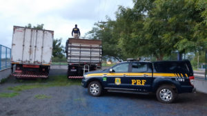 Os policiais realizavam fiscalização na região quando observaram dois caminhões em comboio trafegando em velocidade incompatível com a rodovia, saindo da BR-343 sentido Batalha.