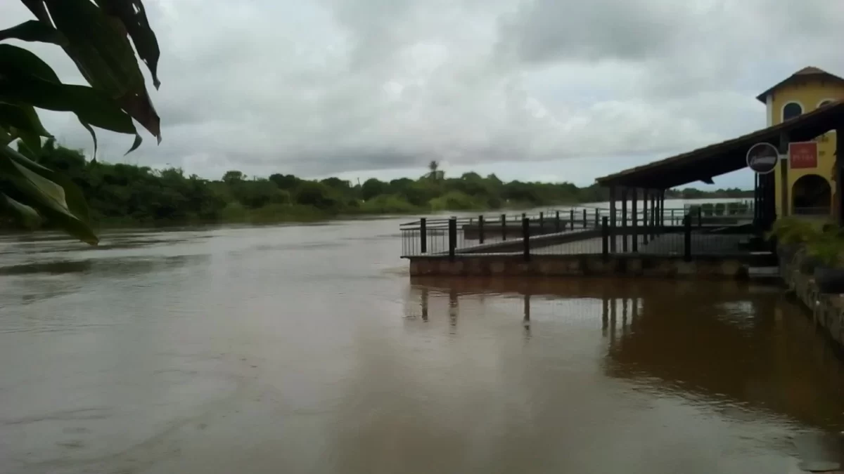 O rio Igaraçu, braço do Parnaíba e que separa a cidade da Ilha Grande de Santa Isabel, estava na manhã desta quinta-feira (6), véspera da Sexta-feira da Paixão, com um volume muito alto e correnteza forte.